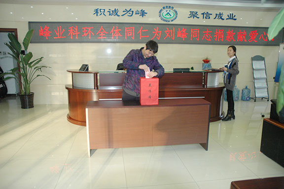 一方有难,八方支援。去年,北京峰业电力环保工程有限公司电气副主任刘峰的妻子被查出患有尿毒症,一年多的治疗费用已经让这个家庭无力承担。得知这一消息,工会立即向全体员工发出了“爱心捐款倡议书”,并得到了集团全体员工的积极响应,纷纷伸出援助之手,积极参加到这次“捐款献爱心”活动中来。点点爱心,汇聚成河,短短几天募捐,共募集到109037.2元人民币。